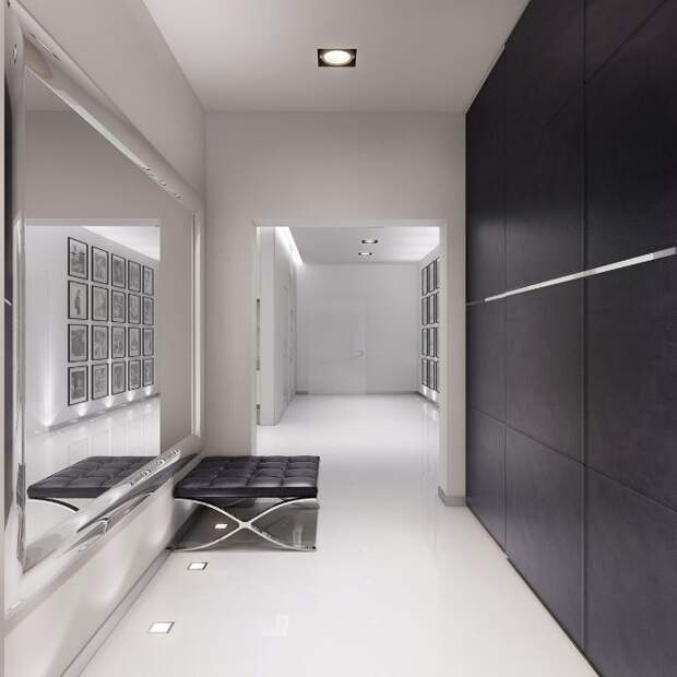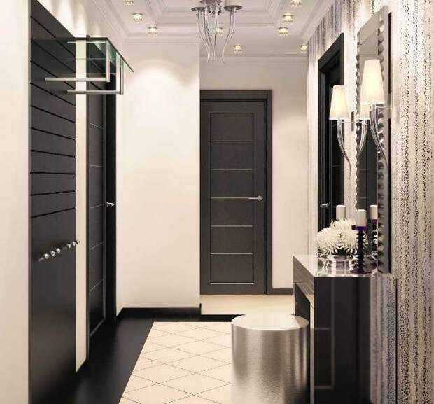 Обязательно нужно выбрать основной цвет и для акцента, он должен выделять важные части интерьера. Если кажется, что оттенки — это слишком сложно, можно сделать убранство прихожей черно-белым — это бессмертная классика.