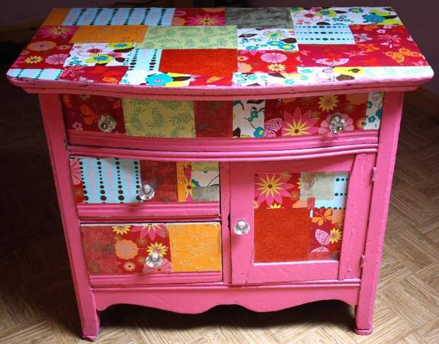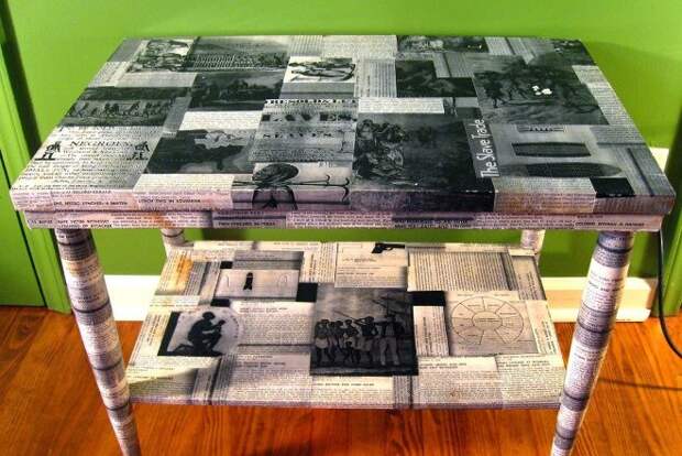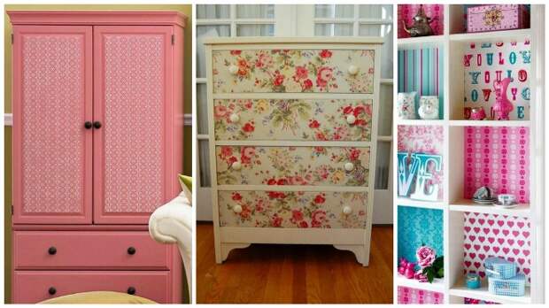 Умелое обращение с обоями способно не только обновить старые предметы, но и помочь в создании уникального интерьера. Декупаж мебели всегда уместен в помещениях, где превалирует стиль ретро. Тогда стоит применять принт в клеточку и другие ретромотивы.