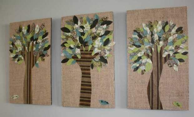 Из обрезков обоев можно склеить панно в виде географической карты. Такой арт-объект станет практичным дополнением детской комнаты. Здесь также будут уместны разные аппликации, выполненные своими руками. Темой могут стать буквы, цифры, бабочки, растения и т. п. Плоские фигуры дополнят объемные элементы из гипса. А ещё можно использовать гипсокартон, пробковую или панельную основу. В последнем случае панель сначала грунтуют, а затем оклеивают обоями.