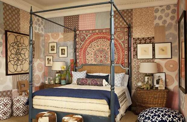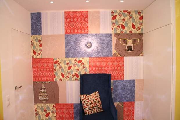Создать оригинальный декор из остатков обоев на стену можно даже из ограниченного количества материала. Выручит техника пэчворк. Она позволяет применять лоскутки обоев различного дизайна. Такая стена будет гармонично смотреться в помещениях, выполненных в стиле ретро и кантри. Однако основных оттенков должно быть не более 3-х.
