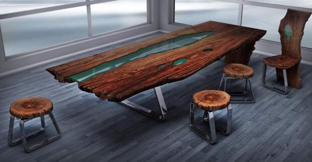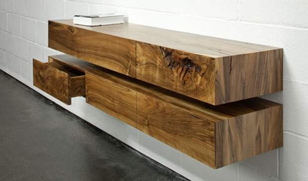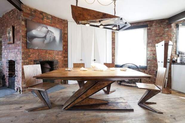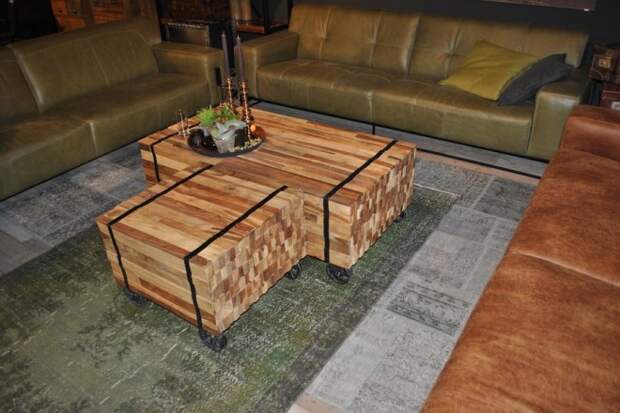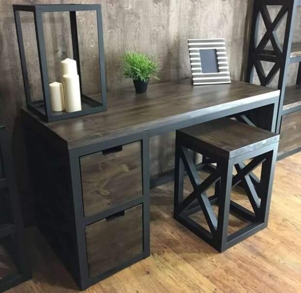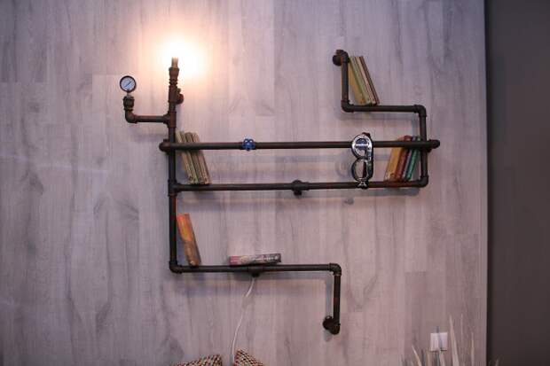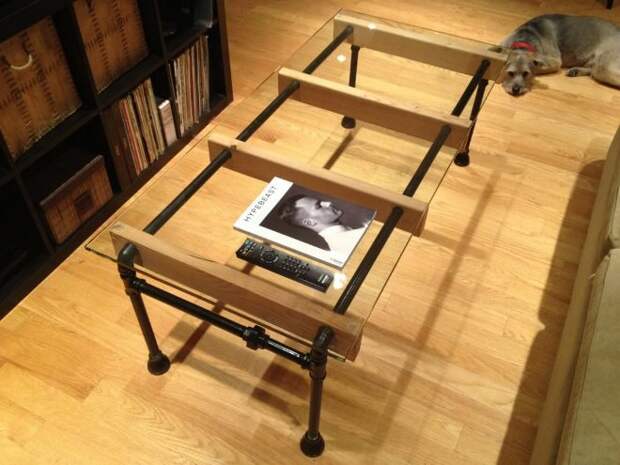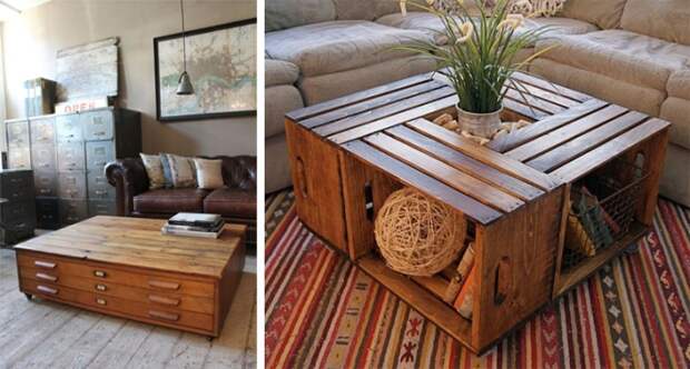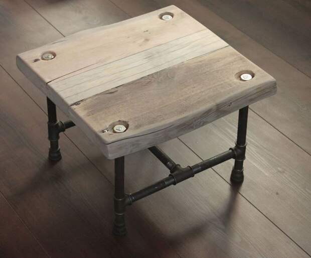 Причем даже не обязательно присматривать фабричные изделия. Оригинальные предметы обстановки несложно создать из дешевых строительных материалов (например, из доски, фанеры, металлических труб). Важно только продумать дизайн вещей.