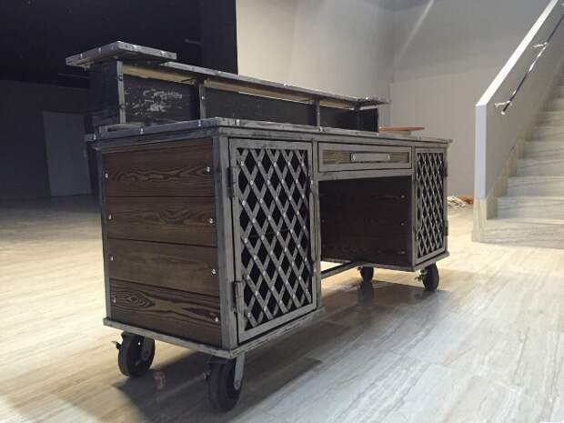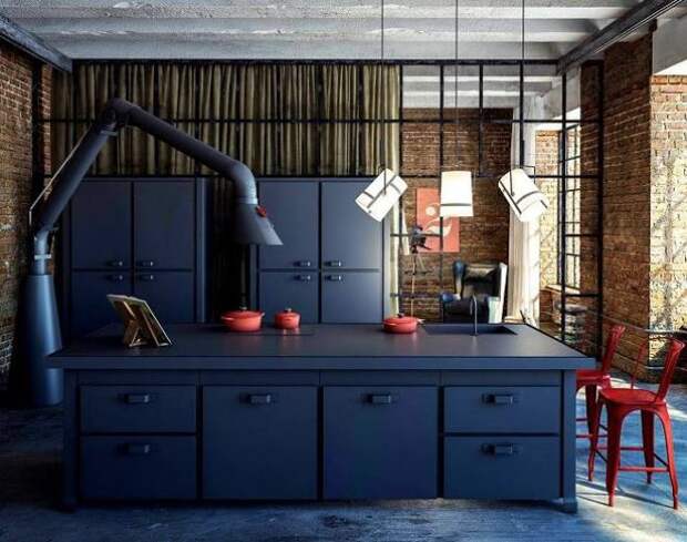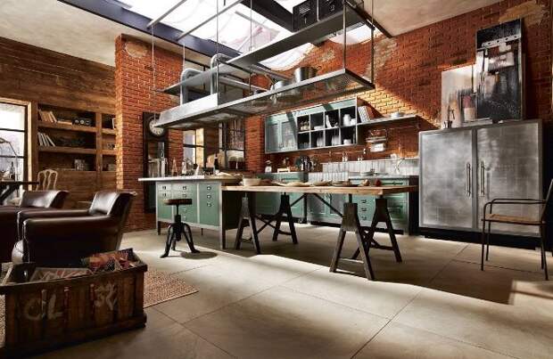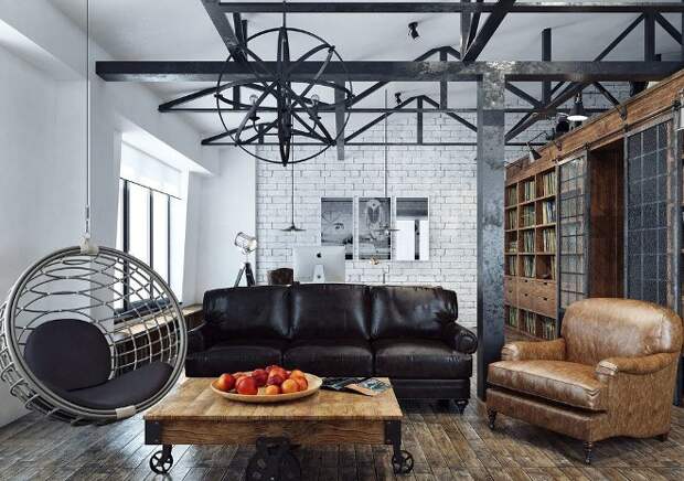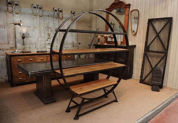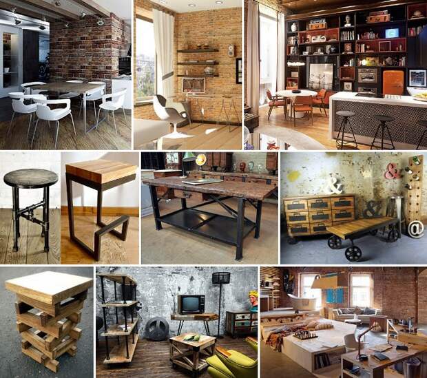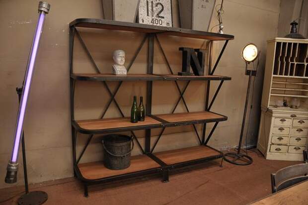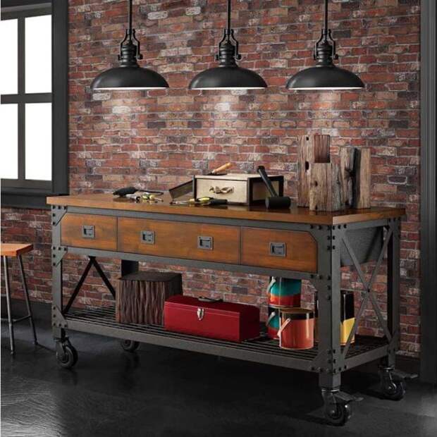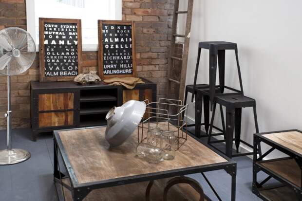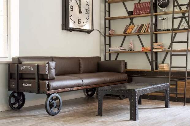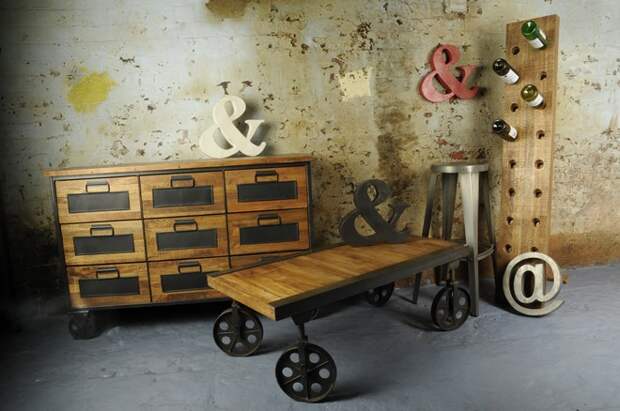 Чтобы не мучиться в поисках новых и оригинальных предметов, можно просто использовать промышленную мебель и адаптировать ее под домашнюю обстановку (оснастить колесиками для легкого перемещения).