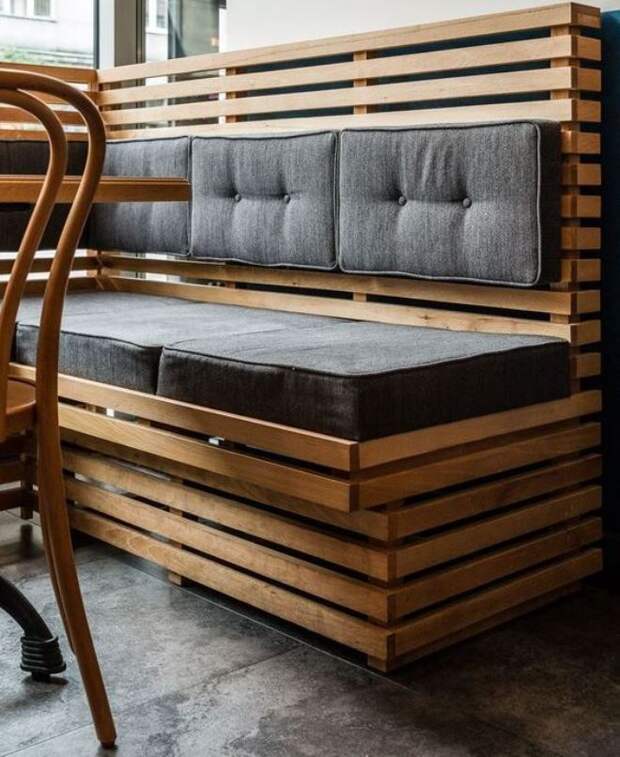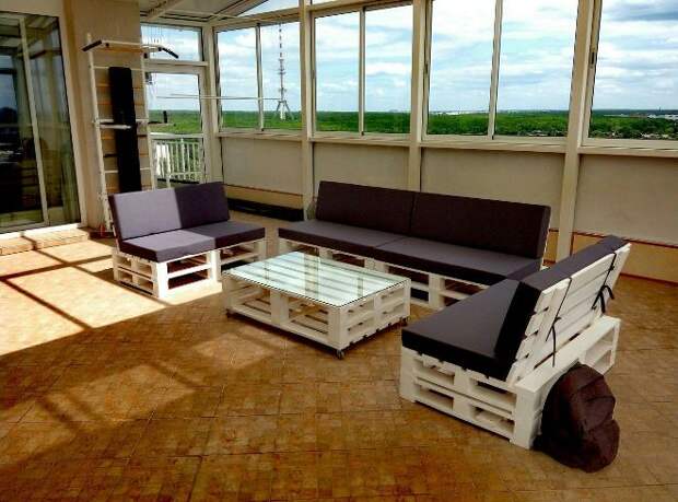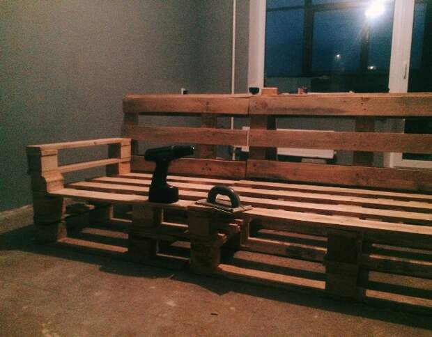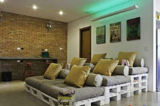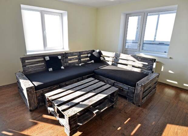 Предметы ручной работы с особым «характером» придадут индивидуальности интерьеру. Модный тренд – мебель в стиле лофт из паллет (транспортной тары для перевозки, хранения разных товаров). Поддоны собирают из деревянных досок и брусков. Стандартный размер – 120х80 см.