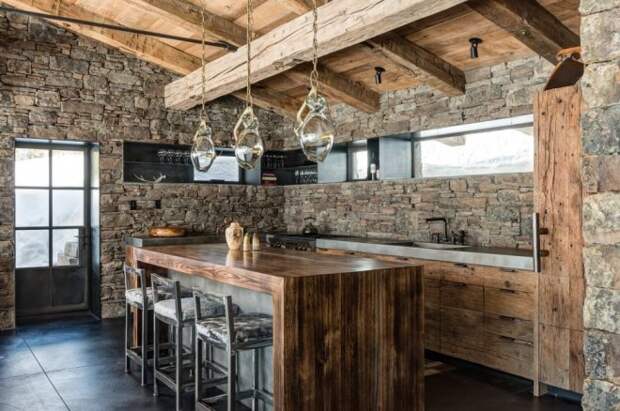 Именно металлические элементы нейтральных оттенков и грубых форм привносят нотки брутальности в интерьер. Это могут быть ручки мебели, стилизованные под скобы или куски труб, арматуры. Модно оснащать кухню рейлинговыми системами.