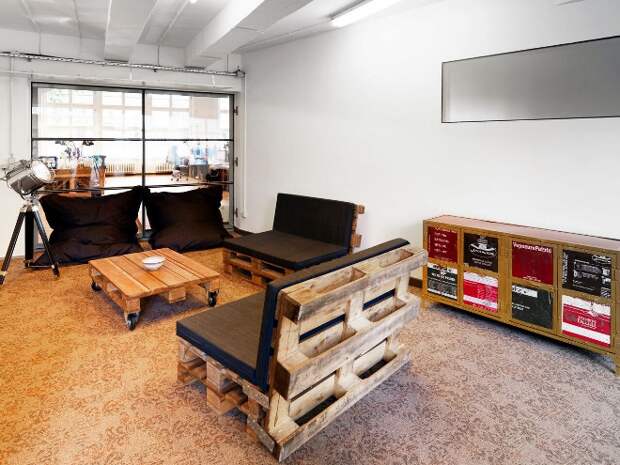 Небольшие мебельные фирмы учитывают возросший интерес потребителей к мебели из поддонов и предлагают нестандартные изделия. Как правило, заготовки предварительно шлифуют, грунтуют, покрывают лаком или красят. Создаются деревянные многофункциональные вещи: диван из поддонов можно одновременно использовать как оригинальный шкаф для хранения мелочей.