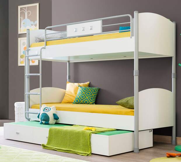 Использование такой мебели позволяет освободить пространство в комнате, а также обеспечить детям разного возраста крепкий сон. Большинство моделей оснащены выдвижными вместительными ящиками, где удобно хранить игрушки и различные мелочи, постельное белье, одежду.