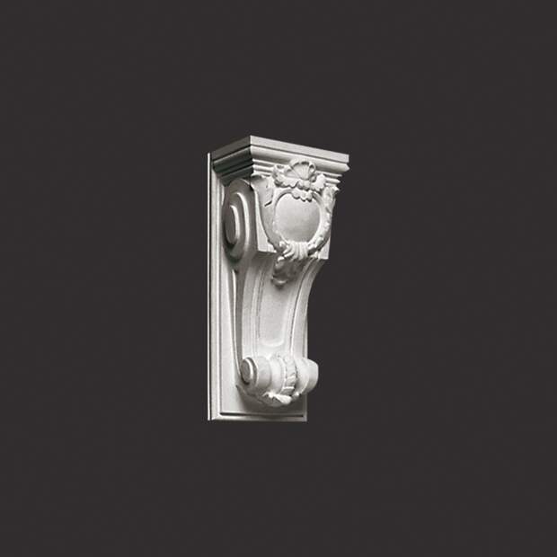 Чаще всего используются при оформлении внешних фасадов, но в уменьшенных пропорциях их можно размещать в просторных прихожих. Пьедесталы служат опорой для кашпо, ангелочков, статуэток из гипса и прочих материалов. С их помощью можно красиво обставить внутреннее помещение. Кронштейны имеют, скорее, декоративную функцию – они словно подпирают собой потолок.