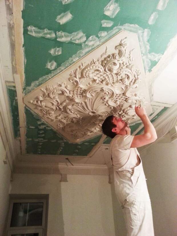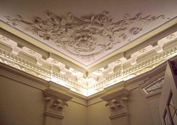 Также при необходимости можно приобрести имитацию, настенные или потолочные декорации и полимерных материалов, и посадить их на клей. При правильном подходе только опытный специалист сможет на глаз отличить полимер от настоящего гипса.