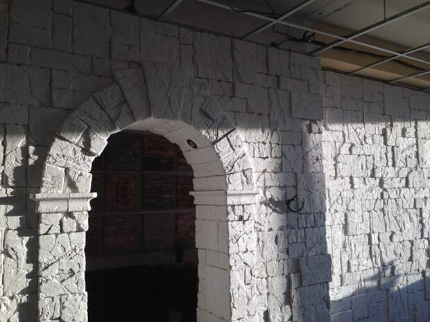Из гипса можно изготовить клиновидный камень, выступающий за пределы плоскости, в которой он установлен. Своим названием он обязан тому, что похожие элементы прежде использовались при строительстве замков и укреплений времен Средневековья.