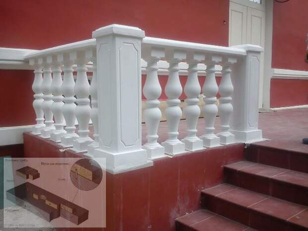 Балясины представляют собой продолговатую конструкцию с миниатюрными колоннами, используемую для украшения лестницы и в качестве перегородки. Они также применяются для украшения оконных проемов на террасах, фонтанов или мостов. Верхняя панель может использоваться в качестве поручней.
