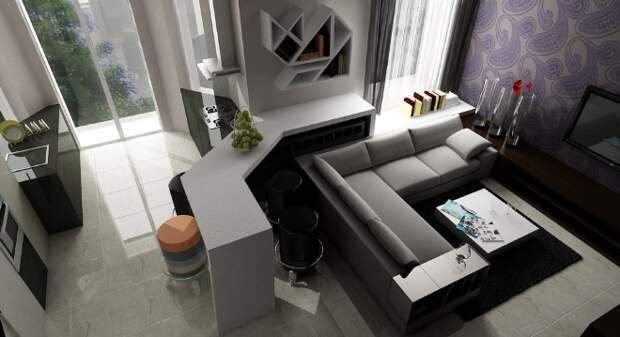 - зонирование, позволяющее превратить однокомнатную квартиру или студию в многофункциональное жильё;