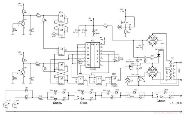Чтобы сигнализация автоматически выключалась, в схему последовательно надо подключить реле времени. Его настраивают на период, когда надо обесточить всю схему.