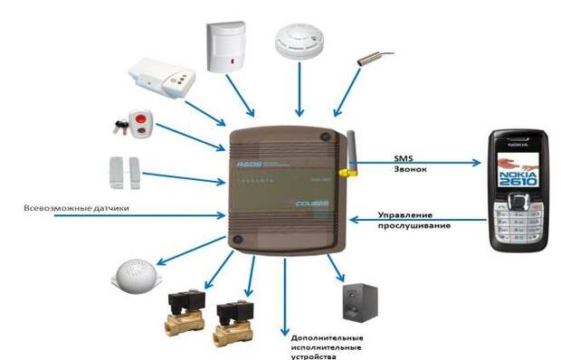Чтобы система могла передавать сигнал на телефон, в электронном устройстве должен быть установлен GSM-адаптер, настроенный на работу с оператором связи.
