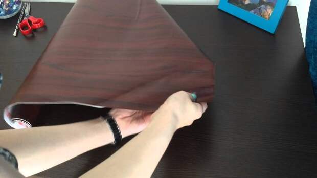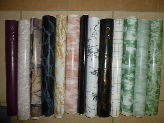Трудно наклеивать такую пленку на поверхности с выступами и углами. В этом случае нужно отрезать полотно с запасом в несколько сантиметров. А если для декорирования используется покрытие с узором, его режут только по внешней стороне – так проще состыковать рисунок.